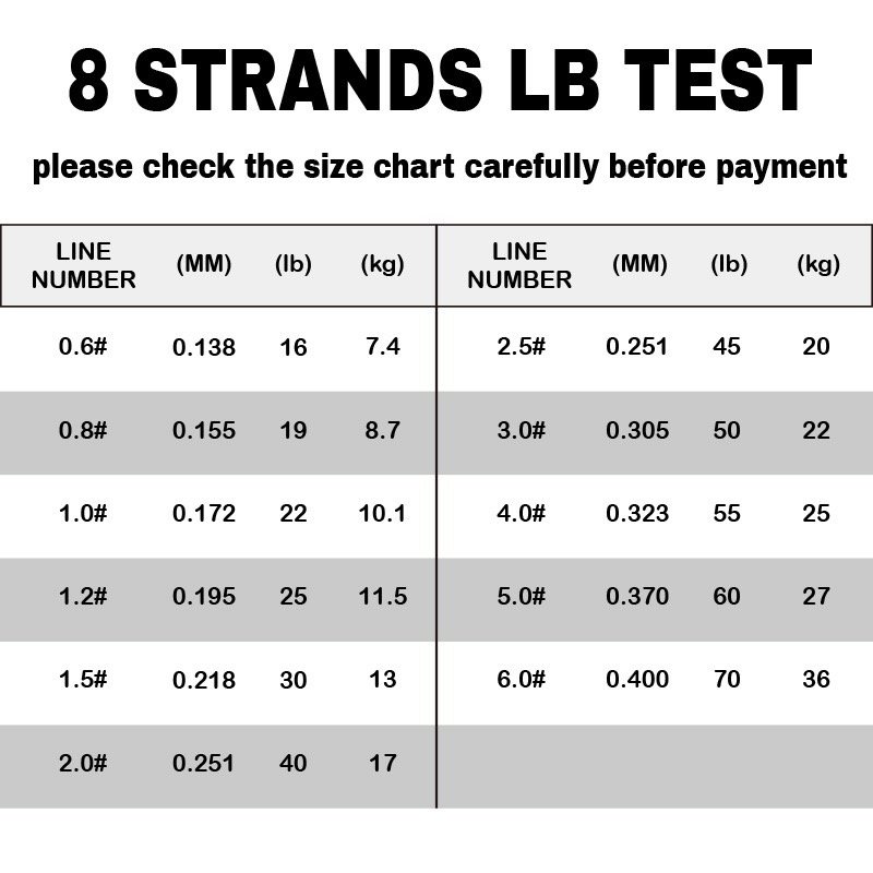 Woven with 8 strands (0.6# to 6.0# options) for exceptional tensile power (16-70lb / 7.4-36kg) — tough enough to handle aggressive fish bites and rugged underwater conditions.