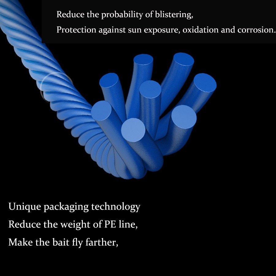 Protected against sun exposure, oxidation, and corrosion (ideal for saltwater use). Unique packaging technology keeps the PE line lightweight, boosting bait casting distance.