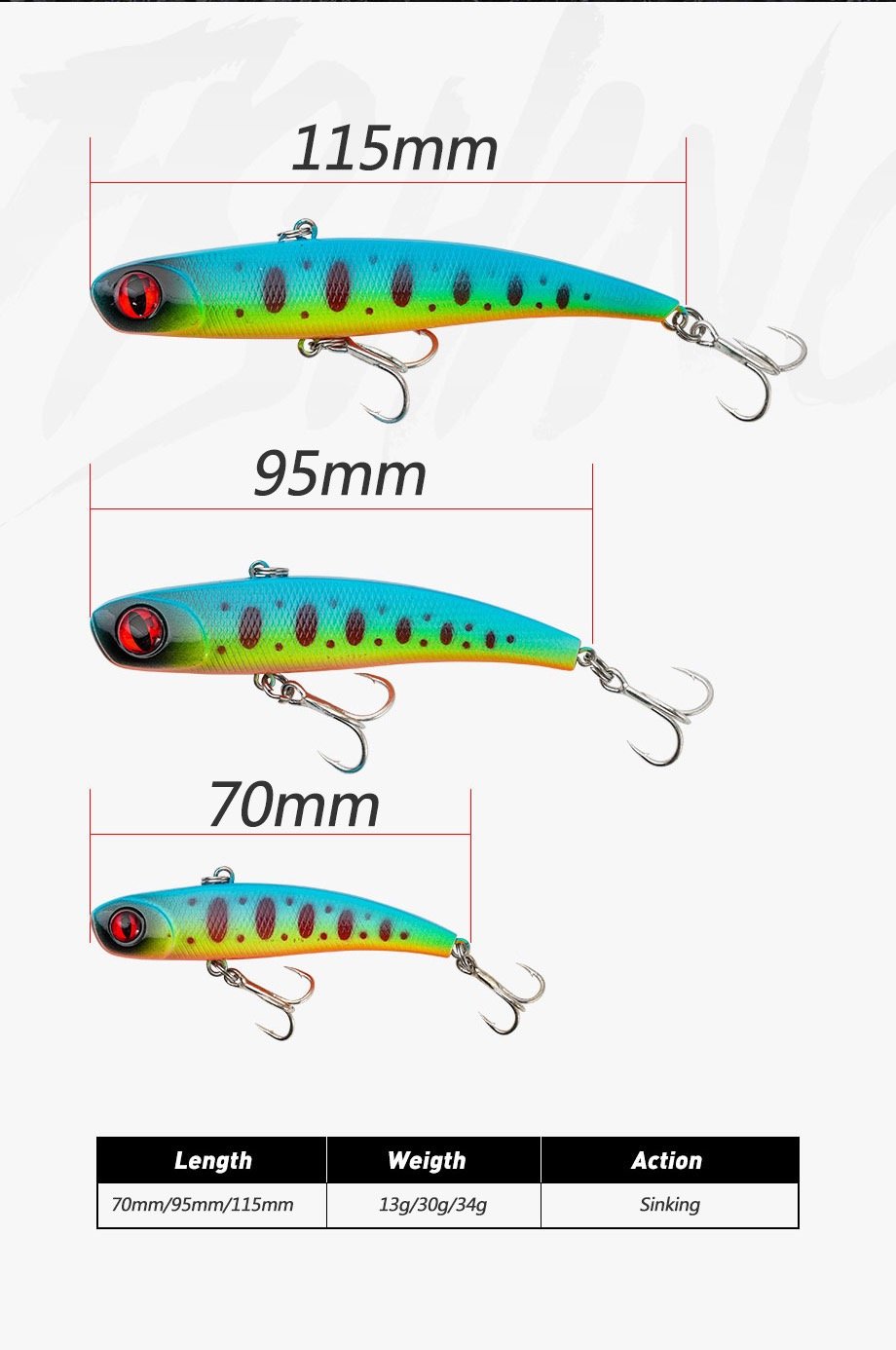 4. Multiple sizes available (70mm/95mm/115mm, 13g-34g), suitable for different fishing scenarios and target fish sizes, widely used for freshwater and inshore saltwater angling.