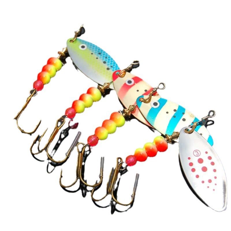 Spinner Lure with Treble Hook, Metal Spinnerbait with Color Beads, Freshwater Saltwater Fishing Lure for Bass Pike Trout